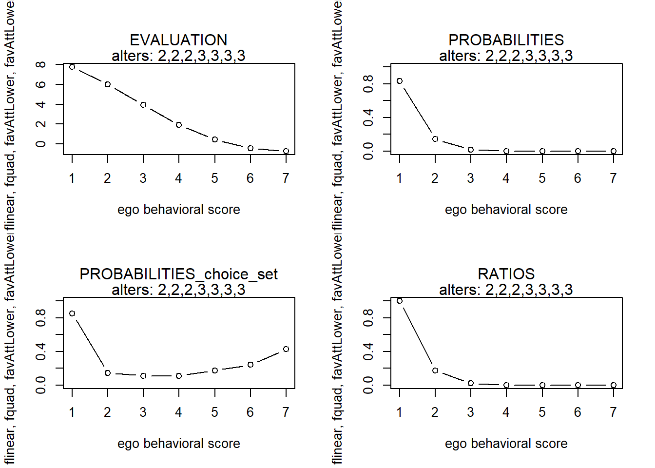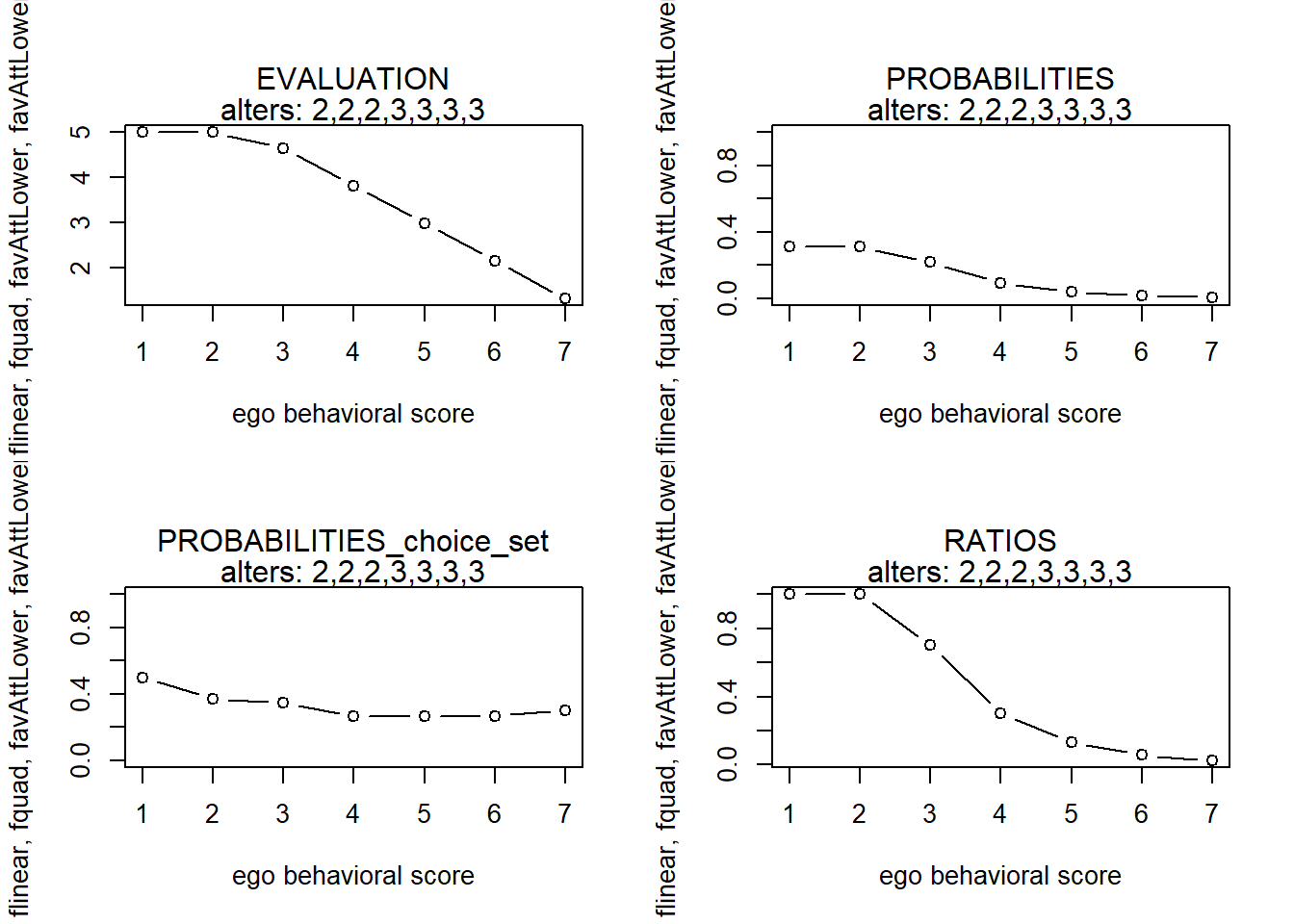 finfluenceplot(alters=alters, min=1, max=7, list(flinear,fquad,favAttHigher,favAttLower,favAttLowerZ), params = c(0,0,0,5,0))