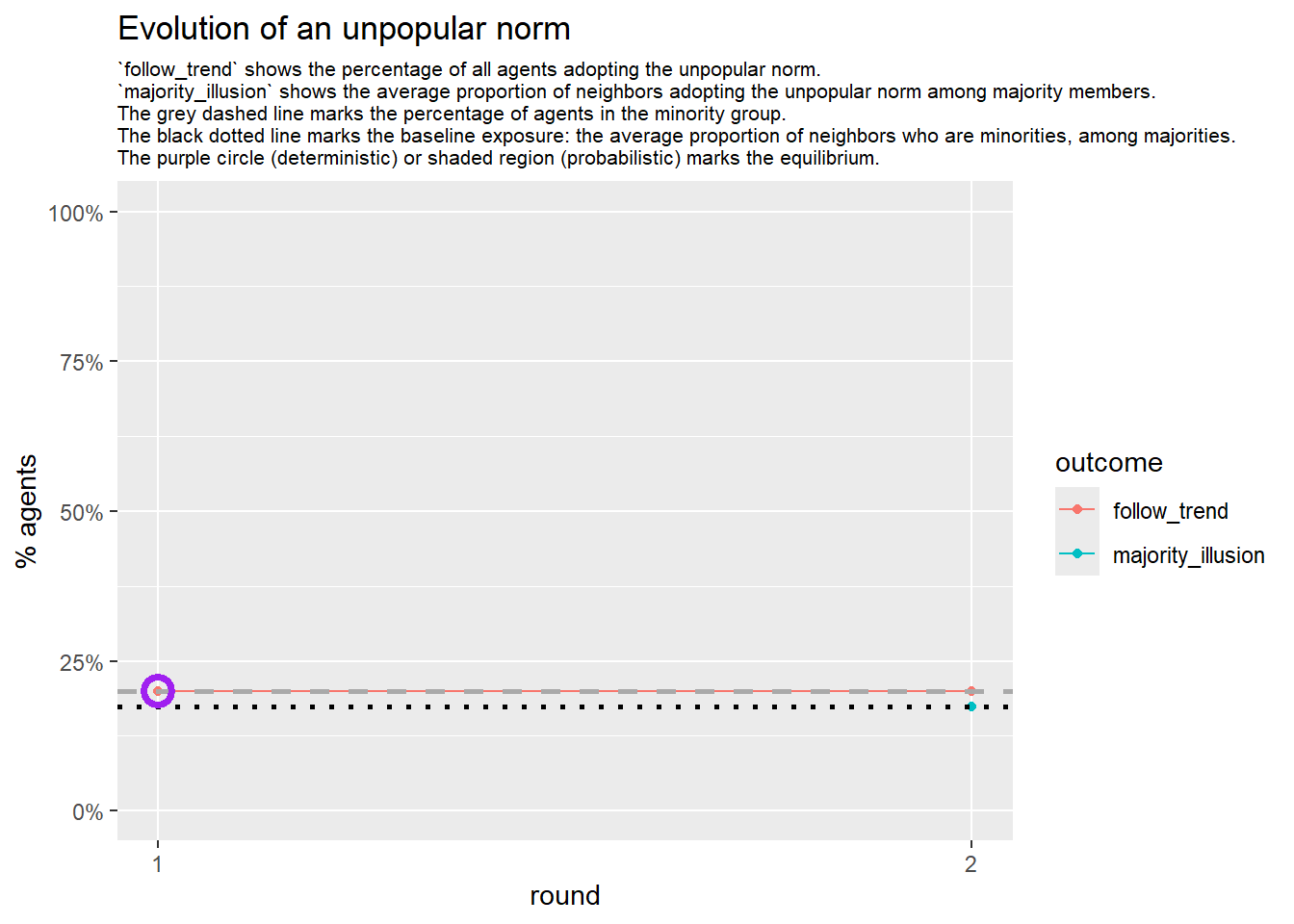 # pick one configuration that likely leads to an unpopular norm, and explore multiple 'seeds':